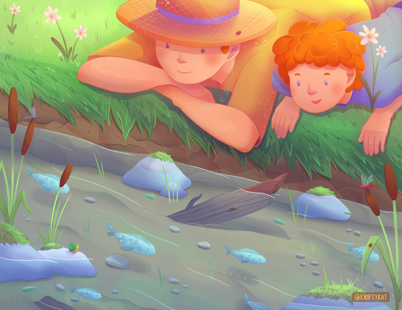Based on memories of going to a friends house and watching little critters move about in the water.