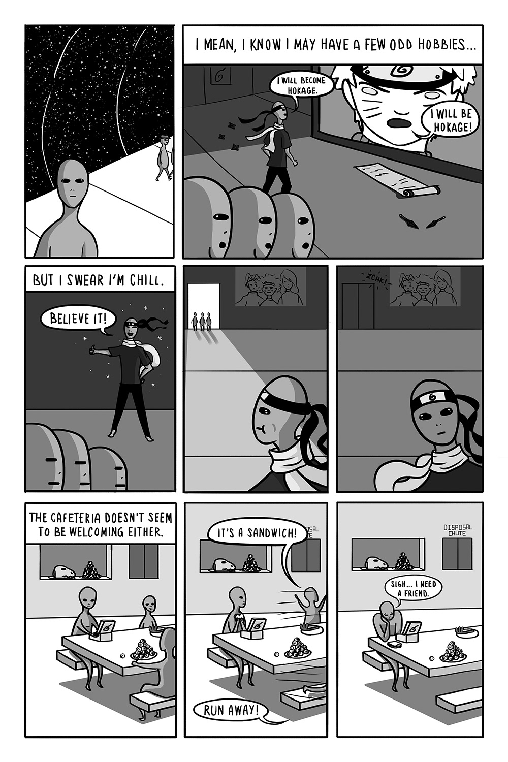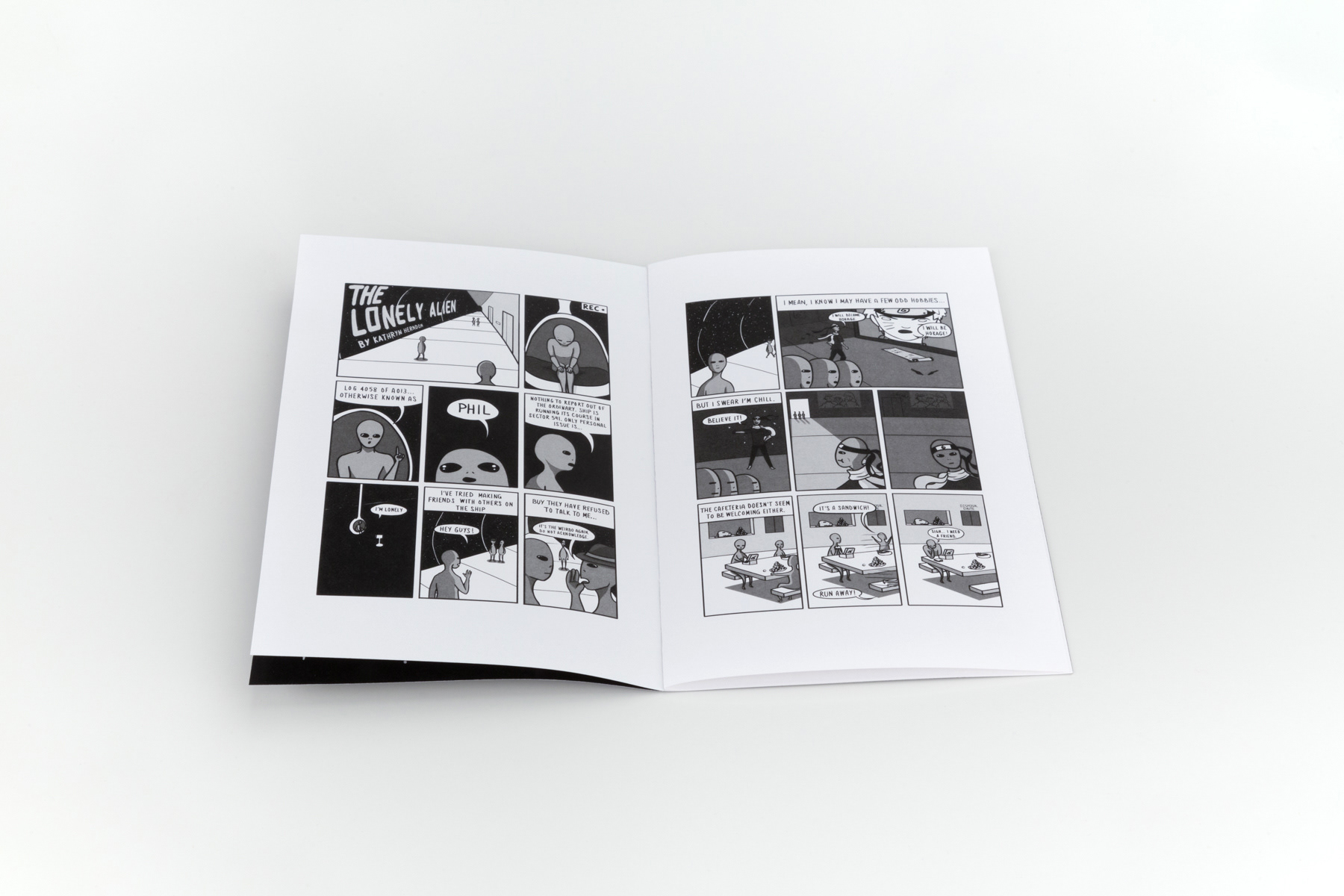 A collaborative minicomic based on a specific theme, place, and character(s). Each artist did their own 3-5 page comic based around The Greys.